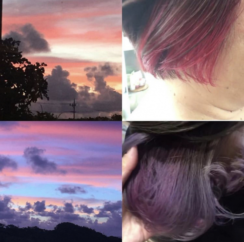 カットしてケアブリーチとハイライトを何回かした後にavedaケアカラー&グロスカラーをして、栄養たっぷりのトリートメントと質感調整のトリートメントを。