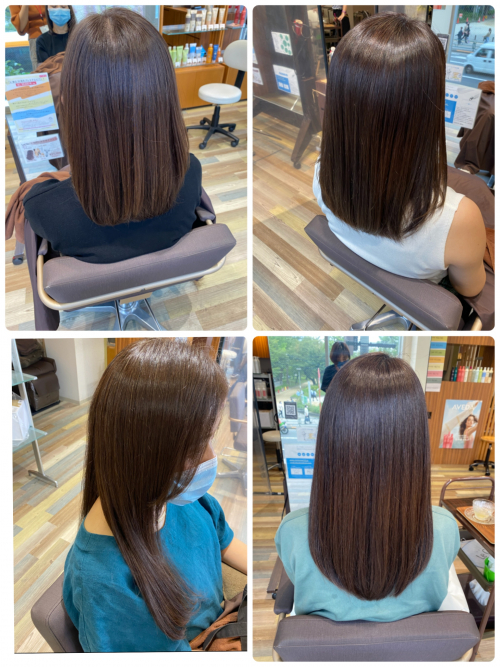 写真にはお白髪を染めてらっしゃる方も、癖っ毛さんもいらっしゃいますが皆さまケアもしてくださってるのでシャインヘアーです。