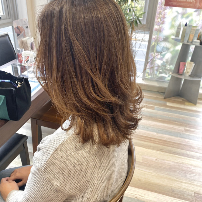 透明のカラー剤に、良い分量を混ぜて使うことで、ダメージを全く感じずに施術することができます。