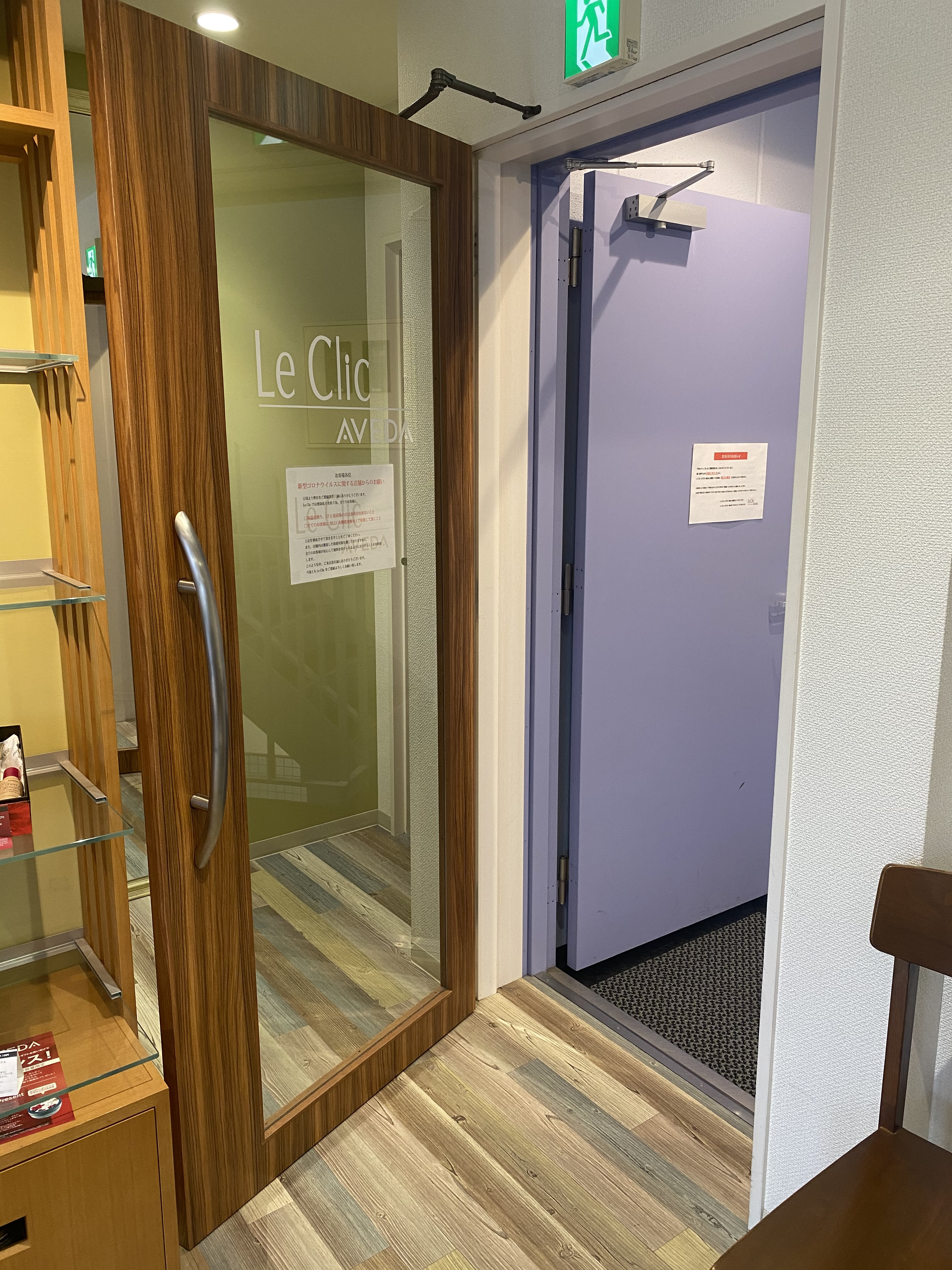入口は、1hに一回ほど換気の為、ドアを開放しております。
