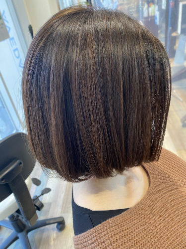 結ばないとのことでしたので、中はしっかり短くしてたっぷり毛量調整をして、ドライヤーの時間が短くなるようにしています。