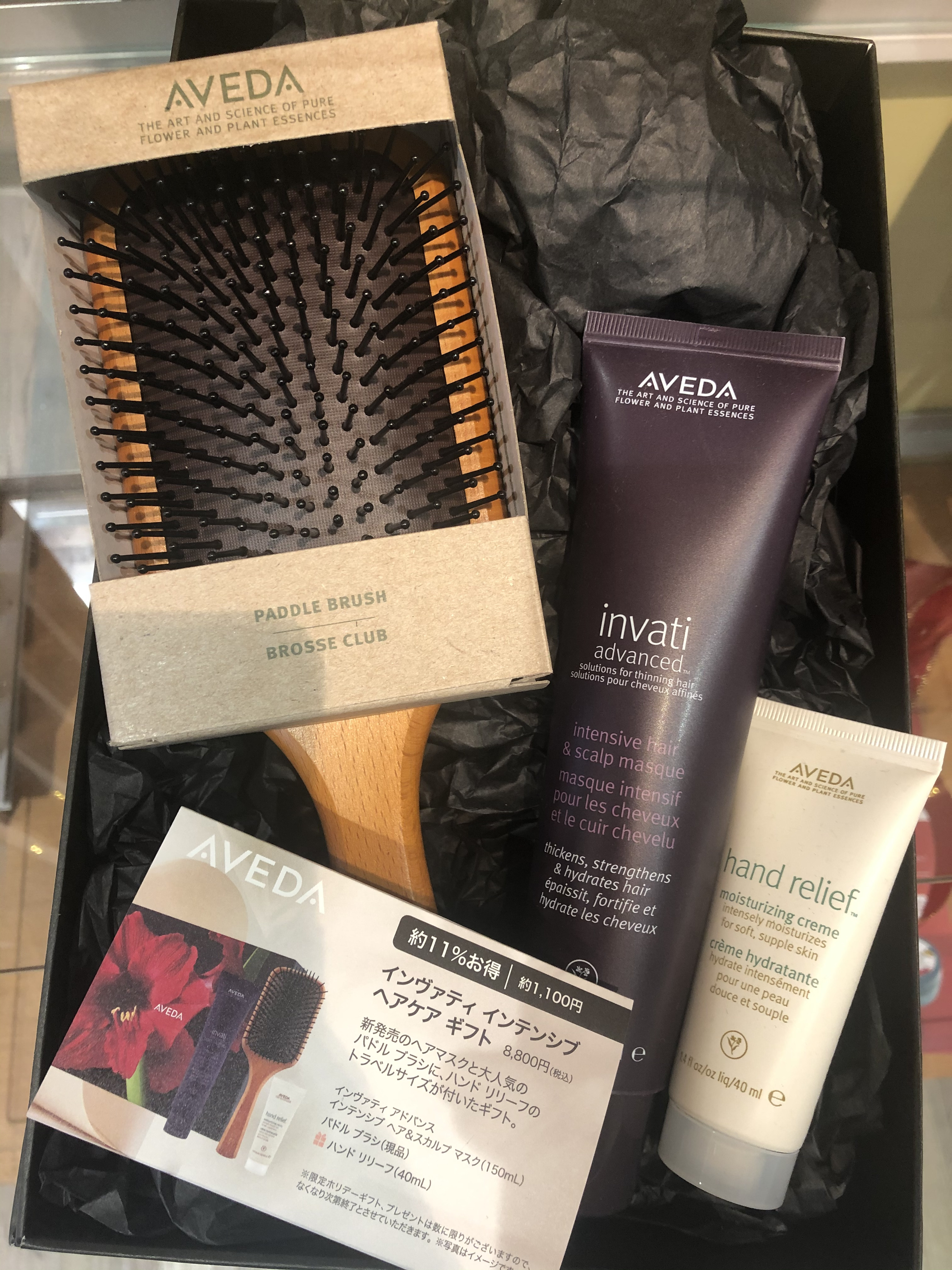 新初場合のヘアマスクと大人気のパドルブラシにハンドリリーフのトラベルサイズがついたギフト
