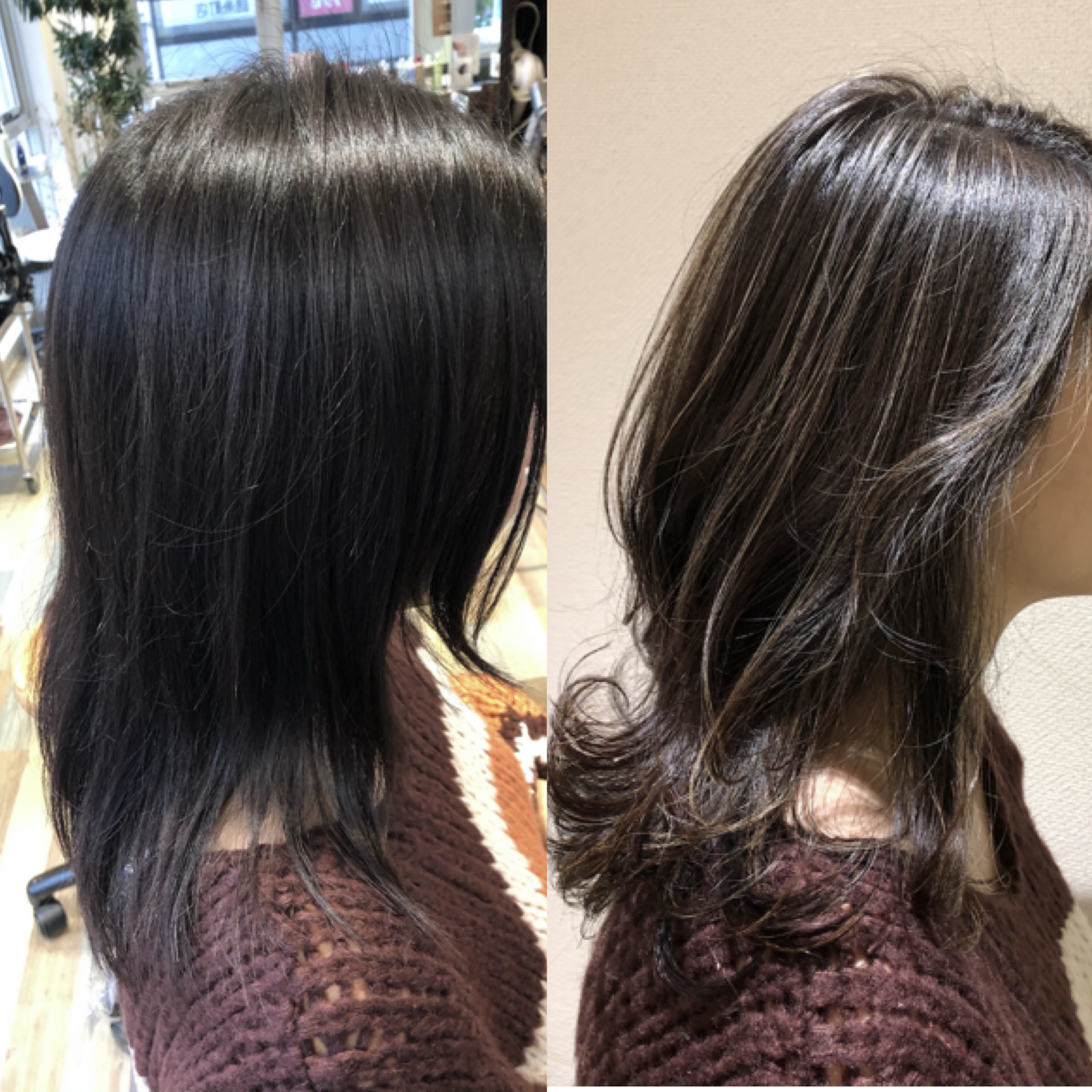 元の色のトーンはあまり変えてませんが、ハイライトがある事で、巻いた時に立体感ができて柔らかい印象になります☺️