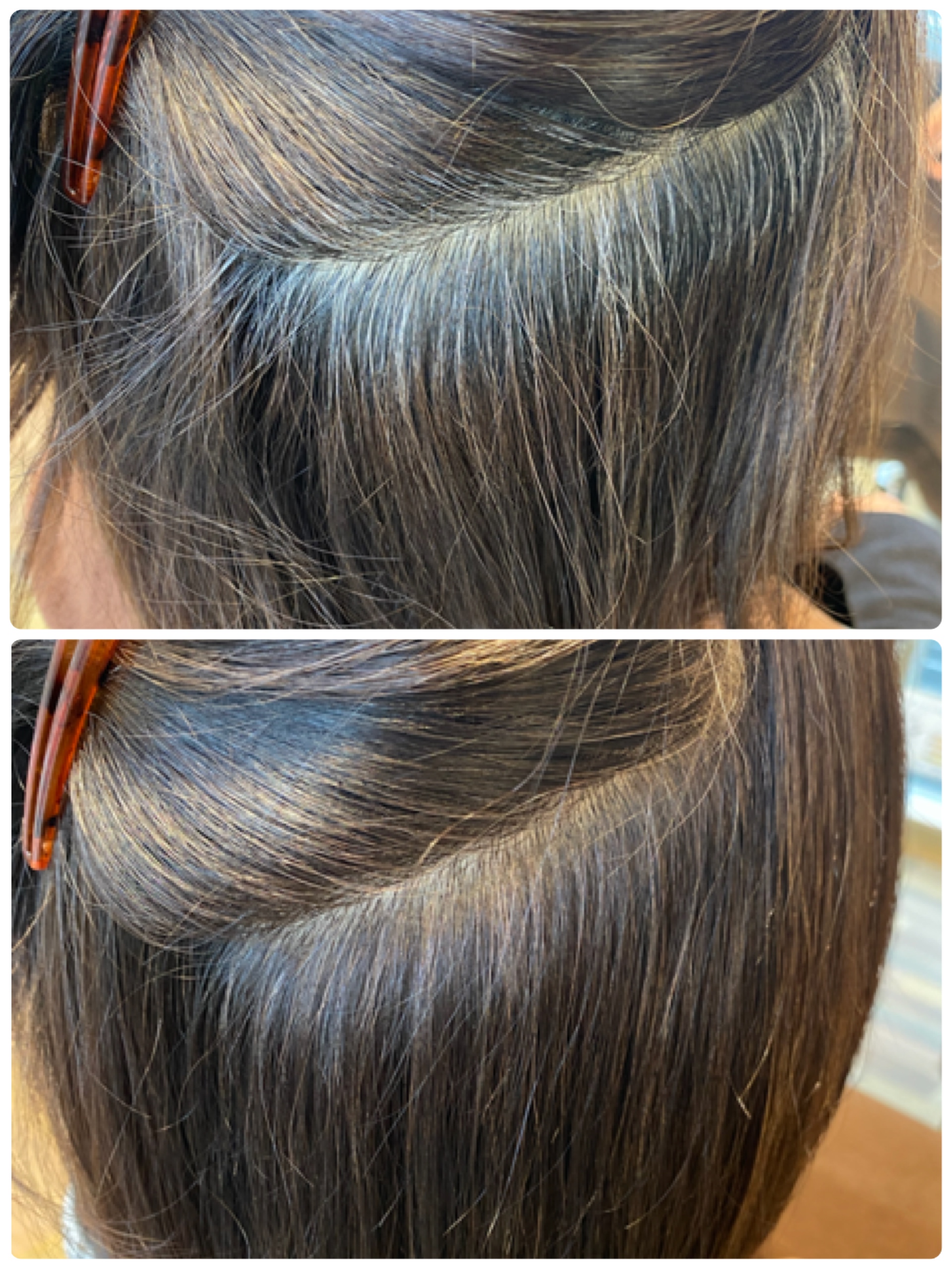 毛先の方のお白髪部分の色落ちが少し気になりますので、