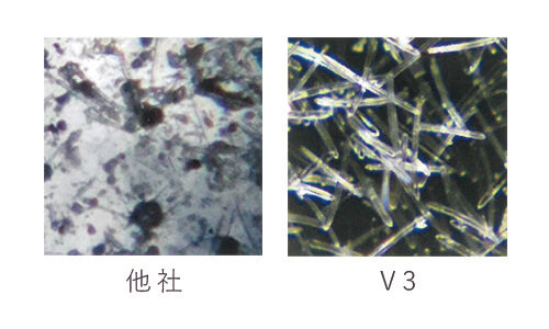 これらの多くや【V3ファンデーション】に使われている“肉眼では見ることができない小さな針状の物質”は、海の生物・海綿を乾燥して粉砕したものから取れる天然の微細針。