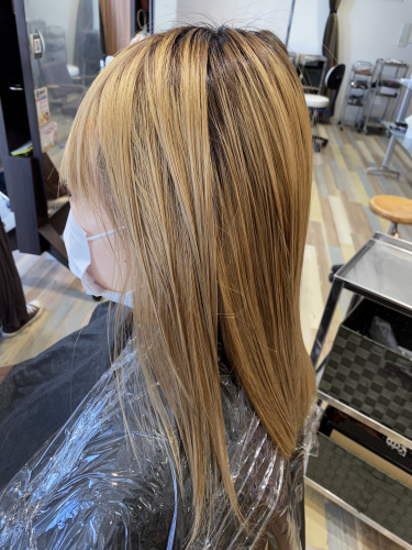 今回は伸びてる部分の根元のブリーチも。