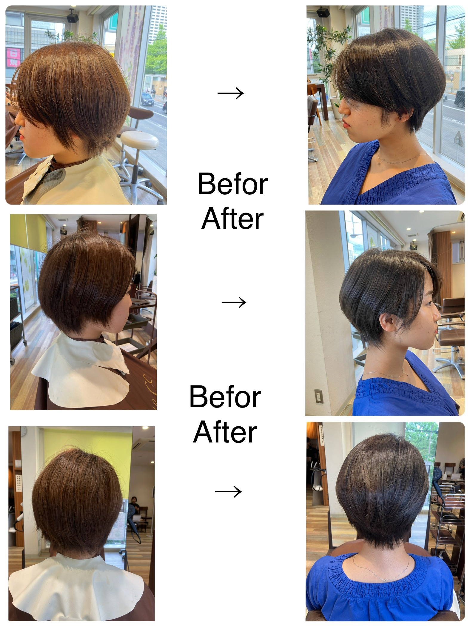 1ヶ月前のスタイルを更にショートよりに!の希望に対して、長さより軽さでより軽くなった印象にしました。