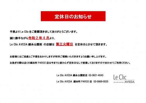 定休日のお知らせ