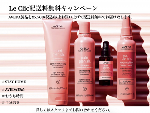 おうち時間をより楽しんでいただく為に、AVEDA製品の配送料無料キャンペーンです。